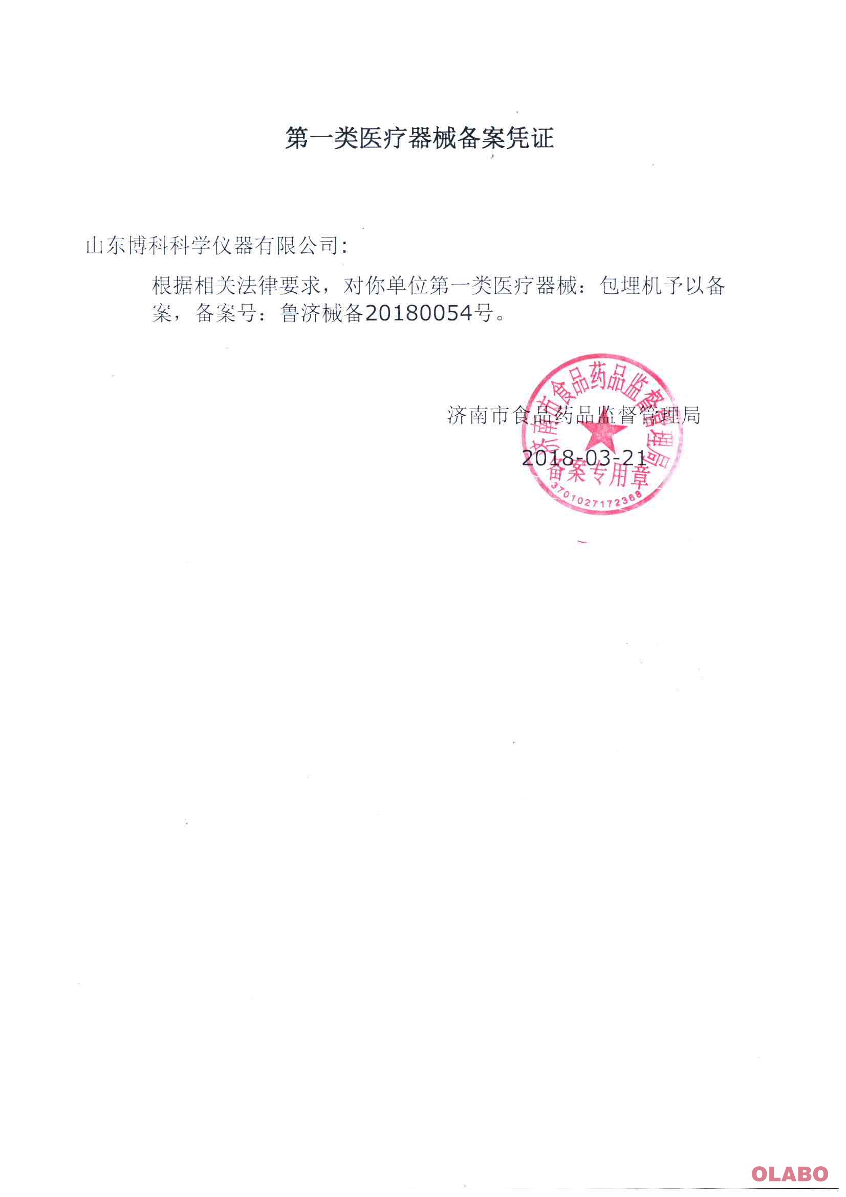 當(dāng)前位置:首頁>新聞中心 > 新聞資訊> 熱烈慶祝山東博科科學(xué)儀器有限公司取得包埋機(jī)和染色機(jī)產(chǎn)品的備案憑證和備案信息表