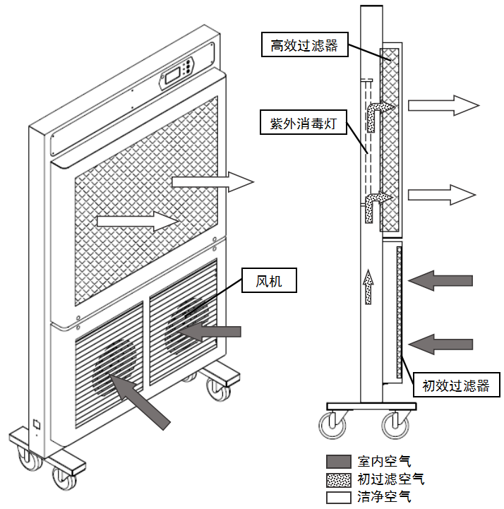 BIOBASE/博科紫外線空氣消毒器是利用風(fēng)動(dòng)系統(tǒng)將室內(nèi)污濁的空氣吸入設(shè)備中,經(jīng)過(guò)濾系統(tǒng)、殺菌系統(tǒng)對(duì)吸入的空氣進(jìn)行凈化消毒處理后放回室內(nèi),通過(guò)不斷的循環(huán)使室內(nèi)空氣質(zhì)量逐步提升到一定潔凈等級(jí),以達(dá)到去除室內(nèi)有害氣溶膠、保護(hù)人員健康的目的。