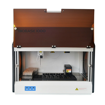 博科全自動酶免工作站BIOBASE1000型專為中小型實驗室設計,提供高效、快速、準確的自動化免疫學實驗解決方案。可同時對兩塊96孔板、8種不同項目的酶免試劑進行全自動操作、包括稀釋、加樣、溫育、數據處理和結果保存等。外置電腦配備人性化全中文操作軟件、界面直觀、可輕松快…