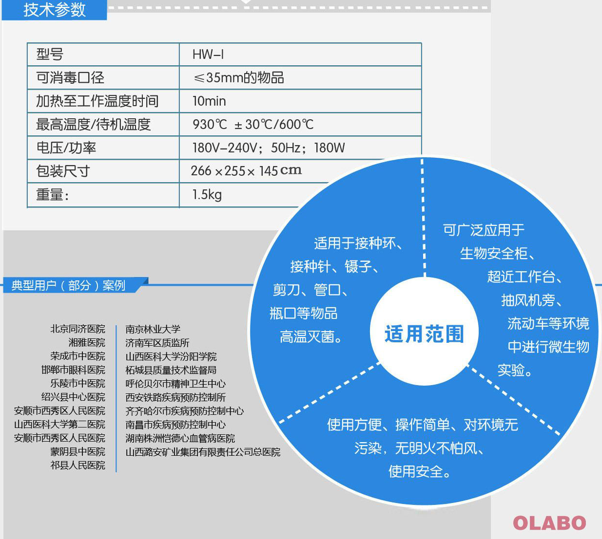 最高溫度930℃±30℃,接種環2秒滅菌,有效減少使用者工作強度,而市場同產品溫度只有800℃ 右,滅菌需7-8秒;