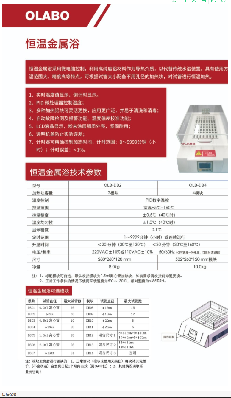 歐萊博金屬浴OLB-DB2標配兩個加熱模塊實時溫度值顯示PID微處理器控制溫度LCD液晶顯示