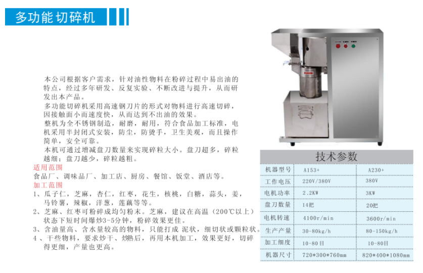 A230多功能切碎機(jī)接觸面小速度快,從而達(dá)到不出油的效果