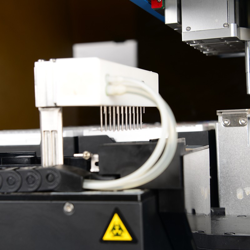 二、加樣通道:2個加樣通道,采用氣體置換加樣原理;每個加樣通道YZ方向均可獨(dú)立運(yùn)行,實(shí)現(xiàn)非等間距吸液、加樣,同時在不等距離的試管或原始試劑瓶取液;加樣通道間距連續(xù)可調(diào),最小9mm,較大300mm。