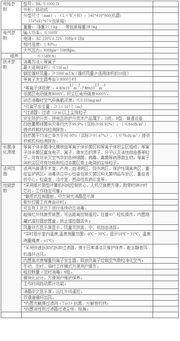 博科BK-Y-1000-D空氣消毒機_等離子空氣消毒機